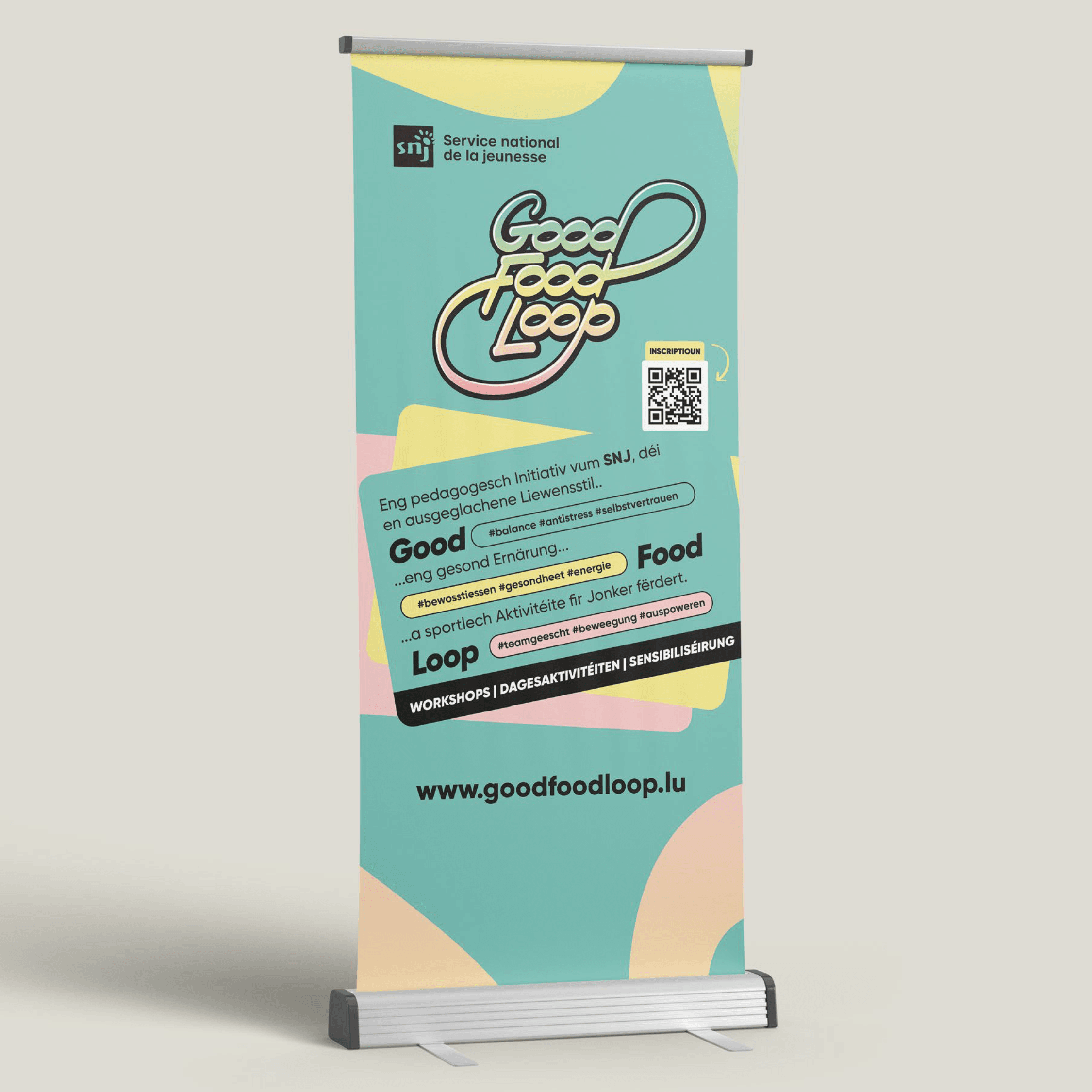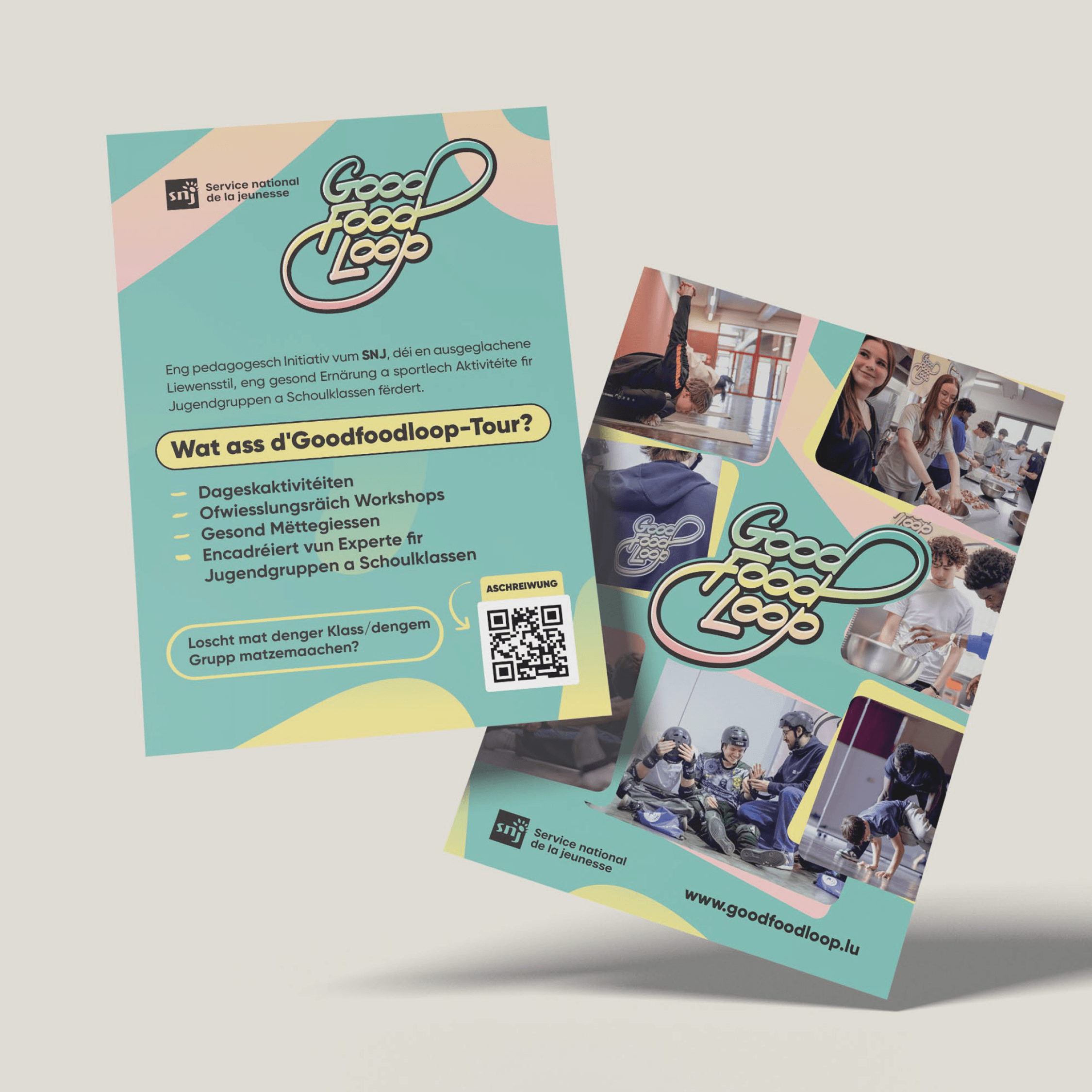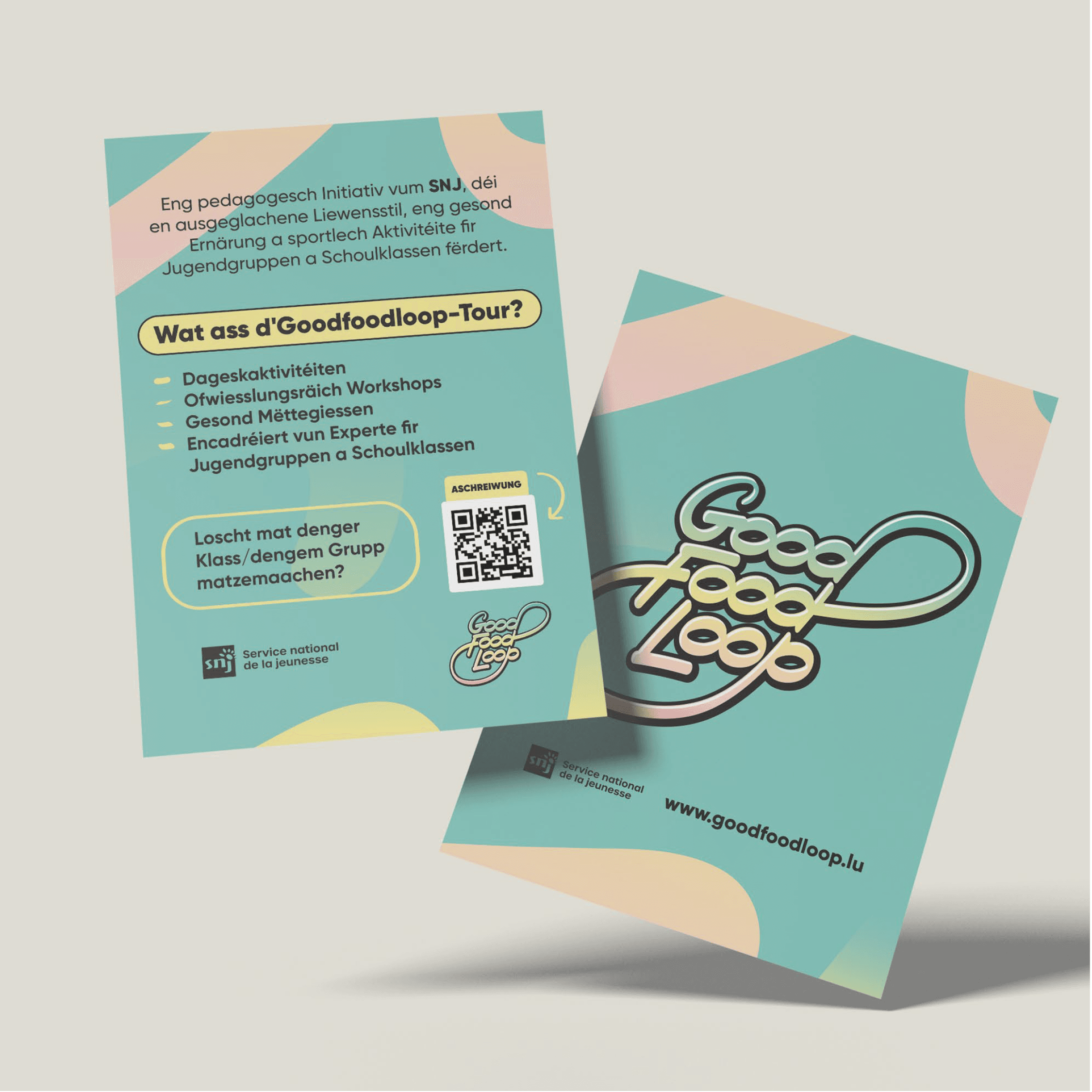 At 101 Studios, we were tasked with creating a vibrant and welcoming visual identity that speaks directly to this young audience. The result? A fresh, colourful pastel design with a dynamic calligraphic wordmark in a flowing graffiti style – playful, energetic, and full of movement, just like GoodFoodLoop itself.